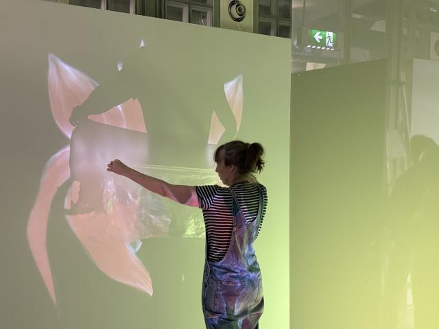 Take a look as Donck experiments with projections and music in different setups. Want to experience what she’s created? Donck will be in the studio every Thursday starting April 24. Watch the process, engage in conversation, and test out her work. We’re curious to hear what you think.