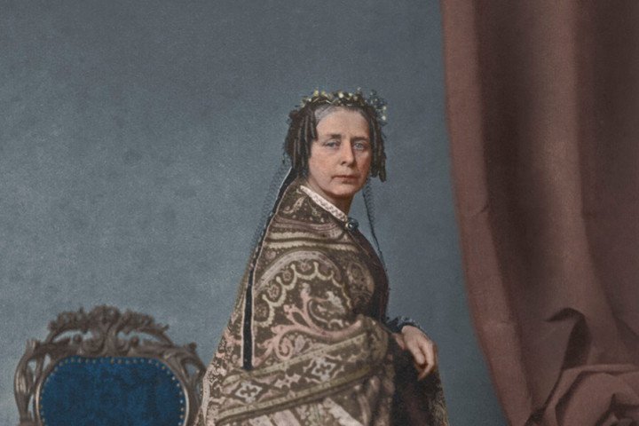 Johanna van Dashorst (1813-1886) was a progressive woman. With her ten children and husband, marine painter, photographer and teacher Christiaan Cornelis Kannemans, she ran the well-run Fotostudio Kannemans en Zoon on the Grote Markt. Her portrait photo was taken in this photo studio. Most striking is her large cashmere shawl. These became fashionable in the 19th century, brought over from Paris. Johanna wears the luxurious variant made of cashmere wool and the distinctive comma-like woven-in paisley motif. The popular, cheaper variant is printed with decorations and made of a less exclusive type of wool.
