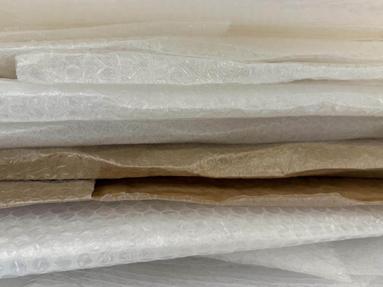 Achter de schermen van het museum wordt er heel wat afgereisd en ingepakt. Bij het beheer en transport van onze kunstwerken komt veel verpakkingsmateriaal kijken, maar wij proberen daarbij zo min mogelijk afval te produceren. Materialen zoals bubbeltjesplastic, kratten en kussens gooien we na gebruik nooit weg. In plaats daarvan krijgen ze een tweede of zelfs derde leven voor een volgend transport.