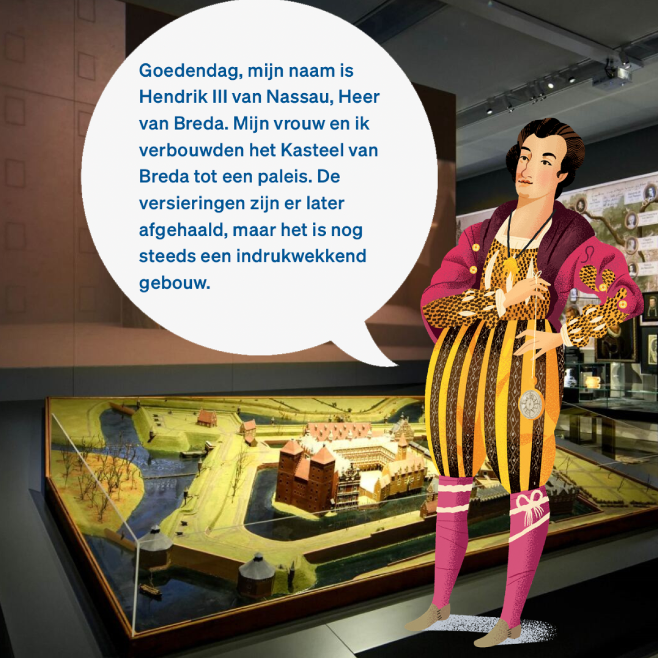 Op 13 punten in de tentoonstelling De Nassaus van Breda zijn stops, plekken waar je iets meemaakt, doet en leert. Laat je tekeningen tot leven komen! Met de stempelkaart verzamel je de stadsbewoners die je wijzer maken over hun leven. Zo kom je meer te weten over de Bredase Nassaus en hoe zij hun leven leidden. Je krijgt een indruk hoe Breda er in hun tijd uitzag en natuurlijk vertellen we je het beroemde verhaal van het Turfschip. Lees hier meer.