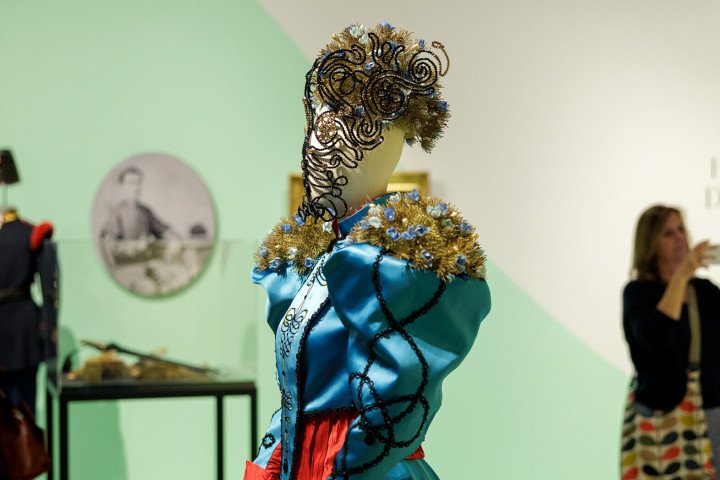 In het museumdepot bestudeerde Van Deurzen de historische kostuums. Voor dit ontwerp heeft zij zich laten inspireren door het zoeavenuniform en het driedelige wandelkostuum. Herken je er nog andere kledingstukken en accessoires in terug?