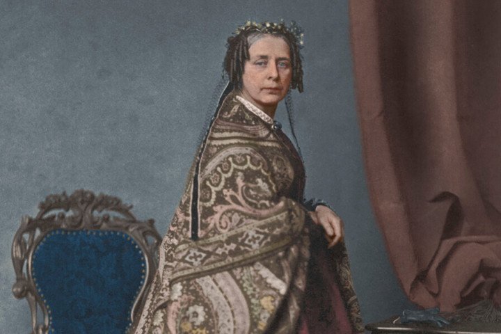 Johanna van Dashorst (1813-1886) is een vooruitstrevende vrouw. Met haar tien kinderen en echtgenoot, zeeschilder, fotograaf en leraar Christiaan Cornelis Kannemans, runt ze de goed lopende Fotostudio Kannemans en Zoon aan de Grote Markt. Haar portretfoto is in deze fotostudio gemaakt. Het opvallendst is haar grote kasjmier omslagdoek. In de 19de eeuw raakten die in de mode, overgewaaid uit Parijs. Johanna draagt de luxe variant van kasjmierwol en het kenmerkende komma-achtige ingeweven paisley motief. De populaire, goedkopere variant is bedrukt met decoraties en van een minder exclusieve wolsoort gemaakt.