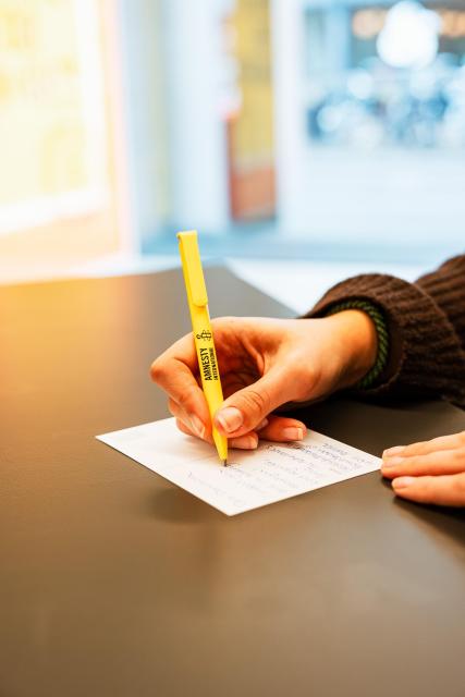 Vanaf 19 december t/m 18 januari komen we in actie: in projectruimte Next (gratis te bezoeken) schrijf je een groetkaart aan de mensen die onterecht worden vastgehouden.